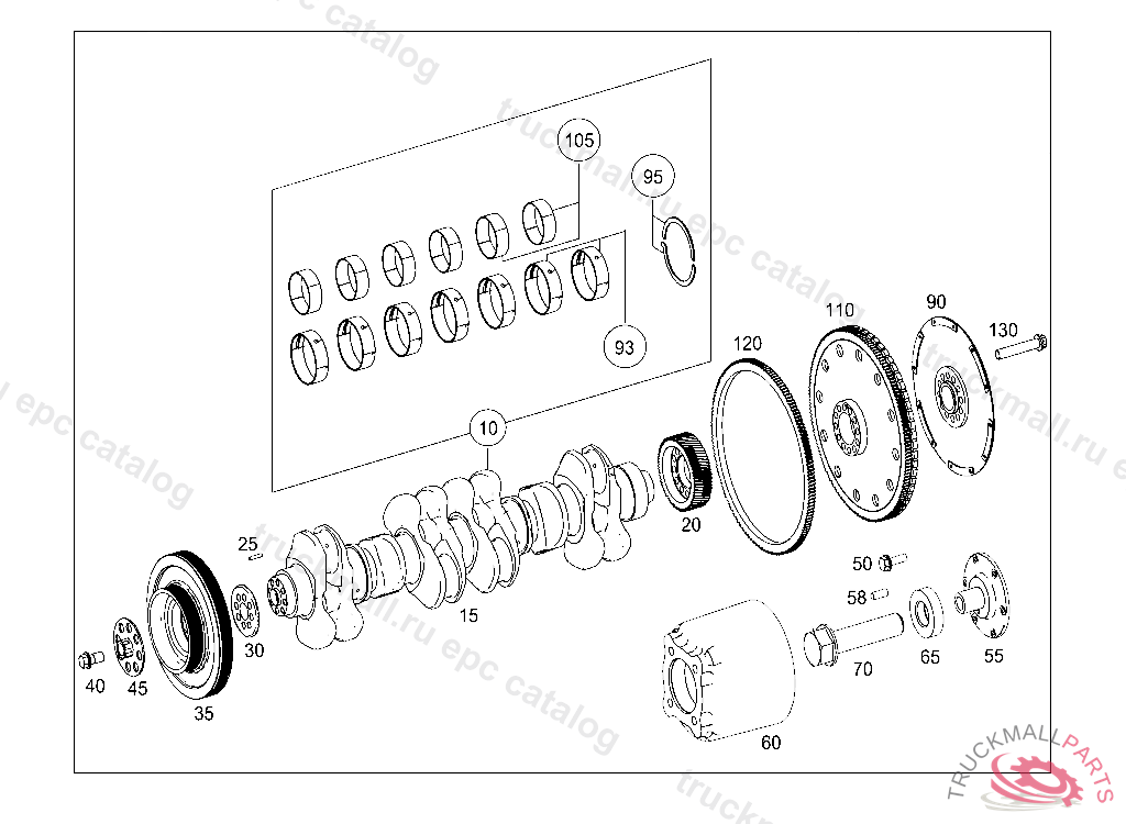 CRANKSHAFT WITH CRANKSHAFT BEARING SHELLS AND CONNECTING ROD BEARING SHELLS