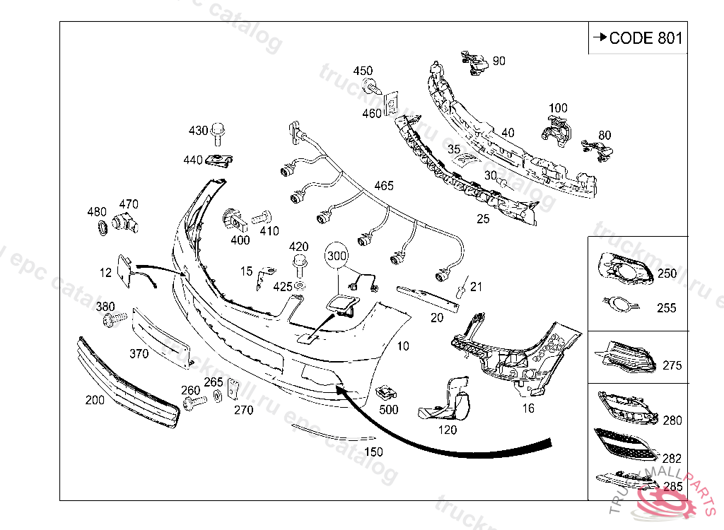 PANELING FRONT BUMPER, A 11984920080109 L 00481320071231 V 00024120071231 F 10701120080102 L 10000020090901