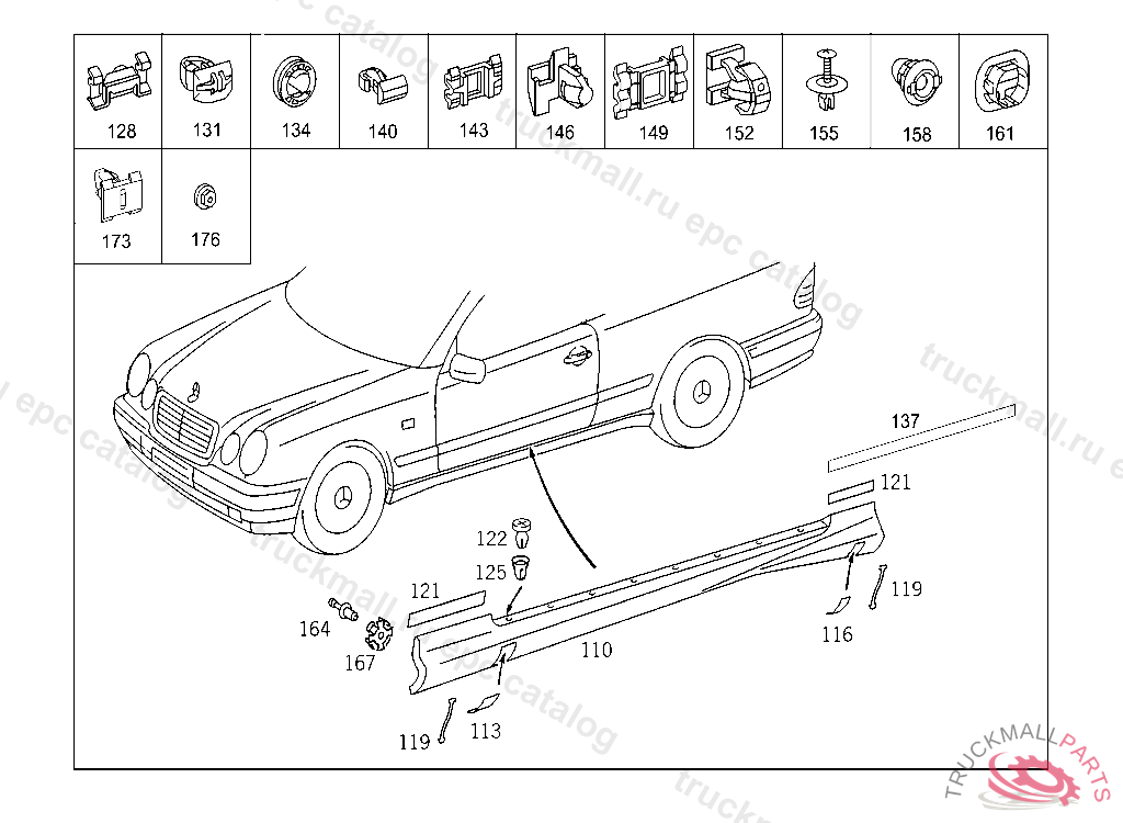 FASTENER BUTTON UPPER PART, ON SIDE MEMBER COVERING, Replaced By: A0019883681