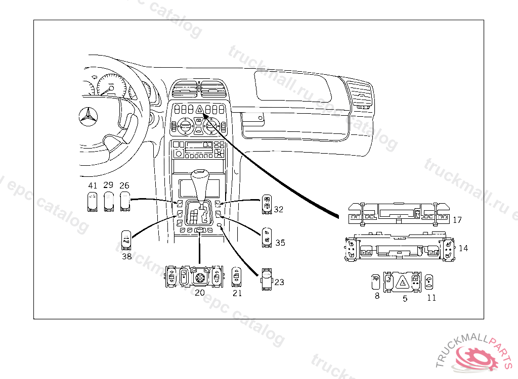 SWITCH HAZ.WARN.FLASH.S.,HD.RESTR.REL.,CENTR. LOCK.S.SWITCH INSIDE VEH., NO.7C45
