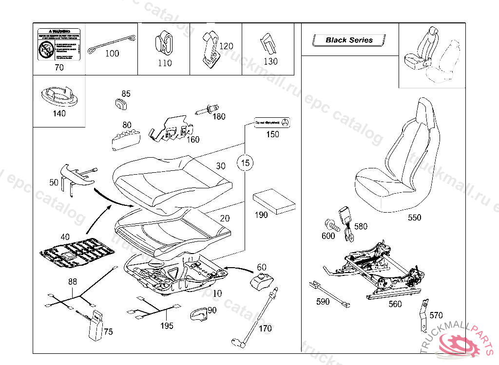 CUSHION LEATHER "AMG", 9E38 811A QFT209A2260 BLACK