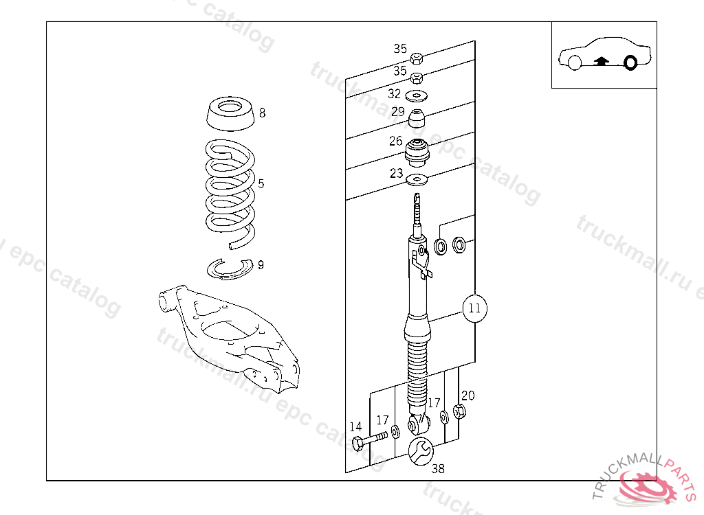 HYDROPN. SPRING LEG. HYDROPNEUMATIC SPRING LEG RANGE OF DELIVERY, ONLY REPLACEABLE BY PAIRS, Replaced By: A2103200713, +002A2029900099
