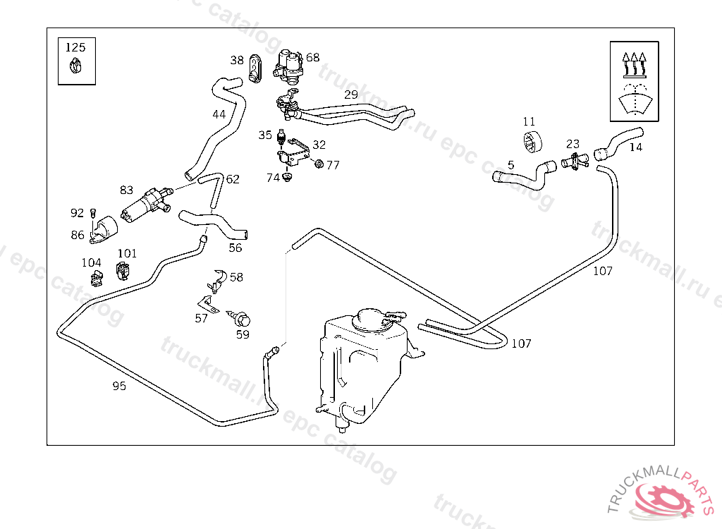 HOSE RETURN, PANE WASHER WATER HEATING, ONLY USED WITH HEATED PANE WASHER CODE 875