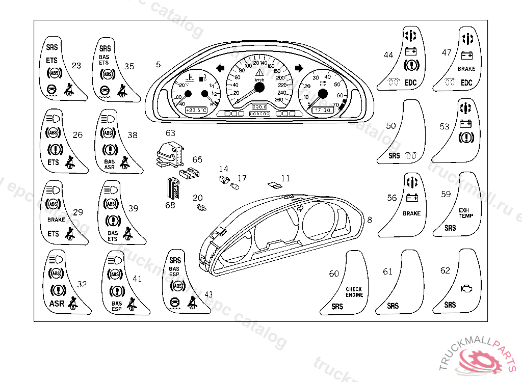 INSTRUMENT CLUSTER160 MPH / 260 KM/H, ATTENTION!!! SPARE PART MUST BE CODED WITH HAND-HELD TESTER AFTER INSTALLATION IN VEHICLE! PART IS ONLY OR ALSO SUPPLIED AS RECONDITIONED PART A 698508 X 012426 EXCEPT CODE 808 ALSO INSTALLED IN VEHICLE TO A 698507, X 012425 WITH CODE 809