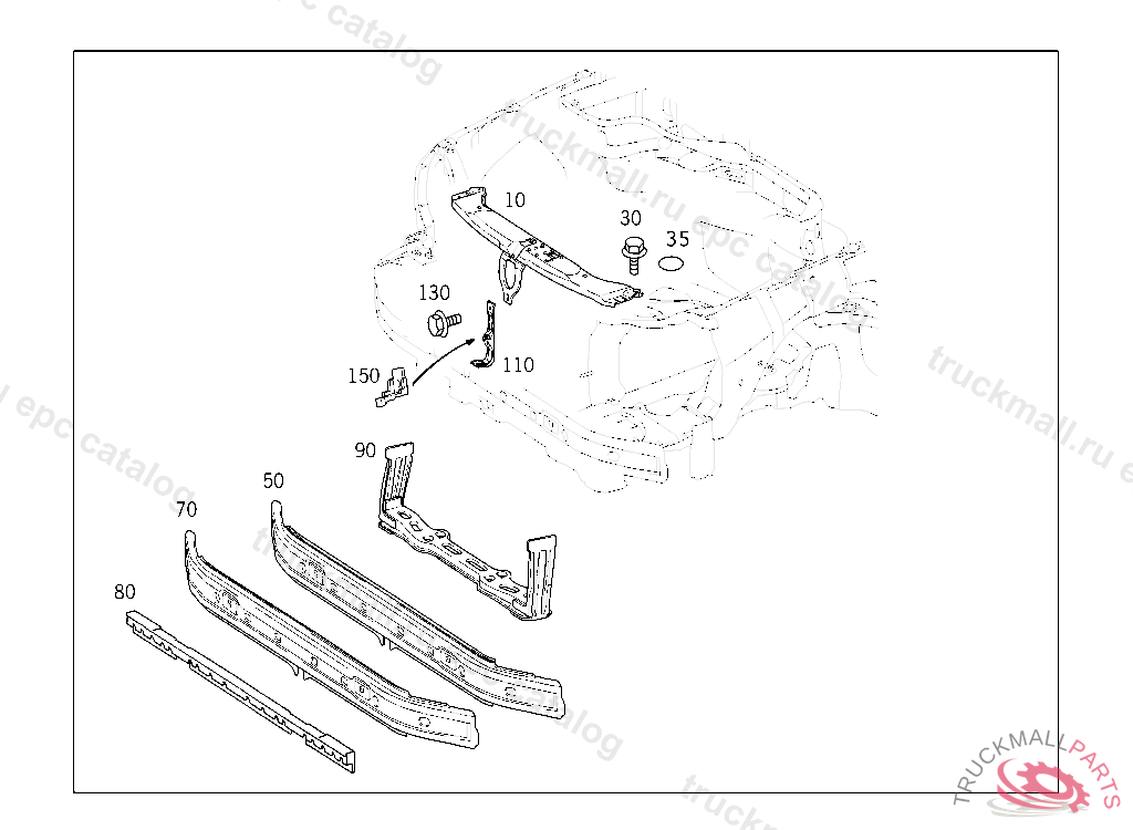 SUPPORT RADIATOR SUPPORT, ORDER ADDITIONALLY FOR USE WITH HIGH-MOUNTED RADIATOR: 1 X 210 620 00 72 FRONT CENTRAL STIFFENING 2 X 210 628 08 31 ADAPTER, RADIATOR MOUNTING, USED WITH HIGH MOUNTED RADIATOR 4 X 201 990 02 50 NUT ORDER ADDITIONALLY FOR USE WITH ELECTRONIC STABILITY PROGRAMM (ESP) CODE 472 1 X 210 620 76 14