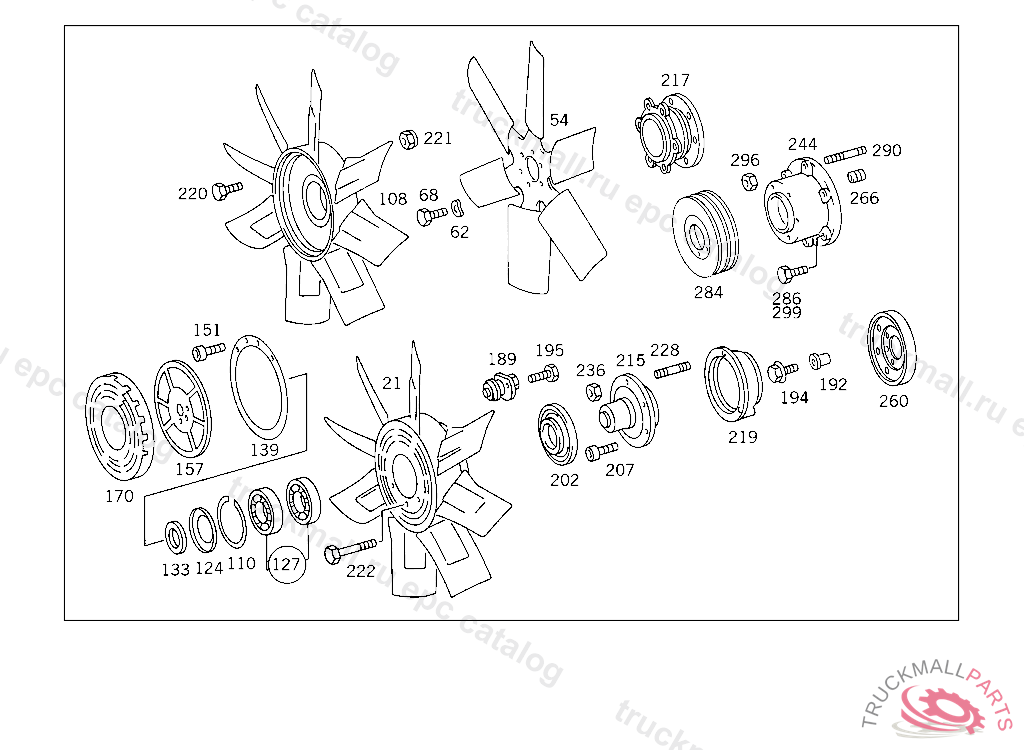 FAN , EXHAUST STOCK OF OLD PARTS UP TO ENGINE 266254, Replaced By: A0022054206