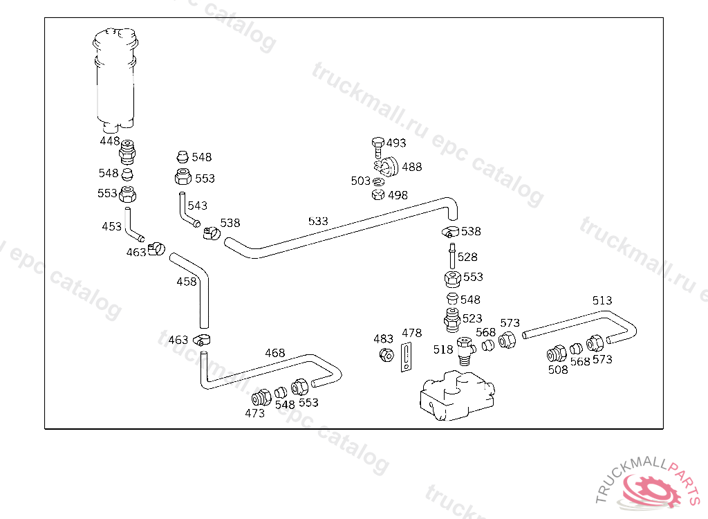 PIPE FROM OIL TANK TO POWER STEERING PUMP AT ENGINE