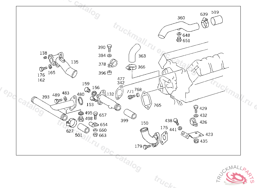 LINE , FIRST EXHAUST STOCK OF OLD PARTS UP TO ENGINE OM 424 001504, Replaced By: A4242000652
