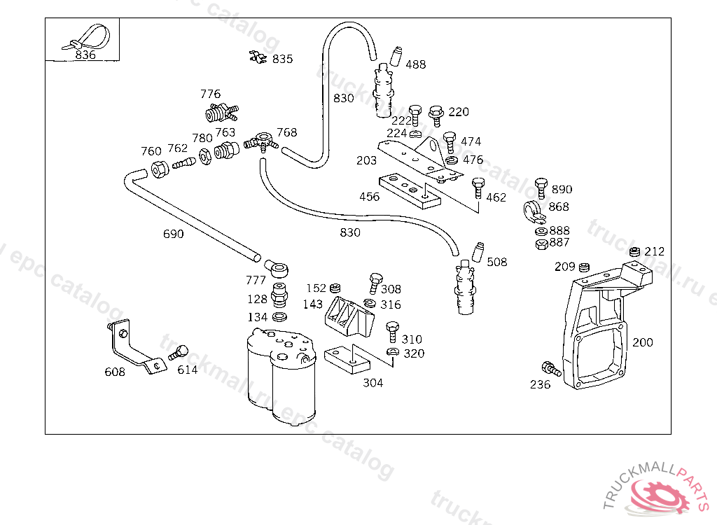 BRACKET DELIVERY AND SUCTION LINES TO ENGINE, FRONT, TO BE ADAPTED DURING ASSEMBLY