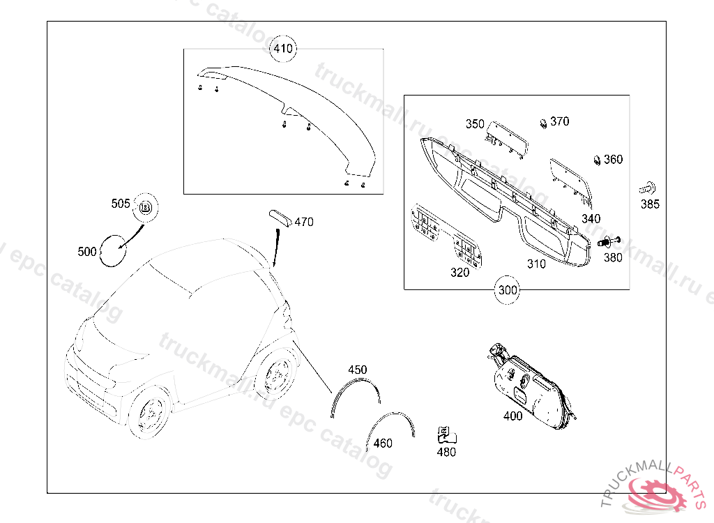 PANELLING LEFT REAR FENDER WIDENING, FIRST EXHAUST STOCK OF OLD PARTS UP TO IDENT NO. K 05319920070816 VEHICLE ACCESS. C63L013 QFT451L0030 PRIME-COATED, Replaced By: A4517930310