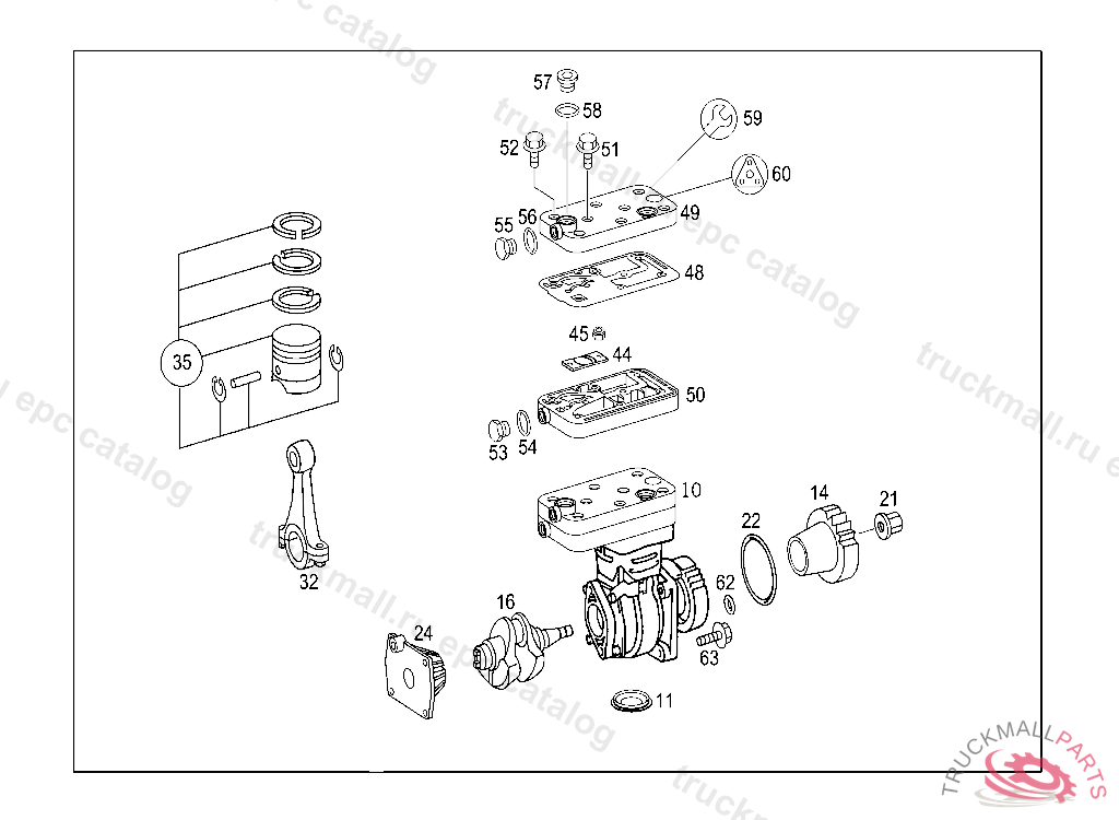 COMPRESSOR ONE-CYLINDER, PART IS ONLY OR ALSO SUPPLIED AS RECONDITIONED PART