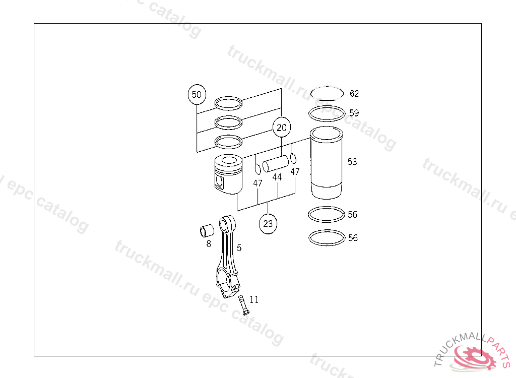 TS PISTON WITH CYLINDER LINER, UP TO ENGINE 949131