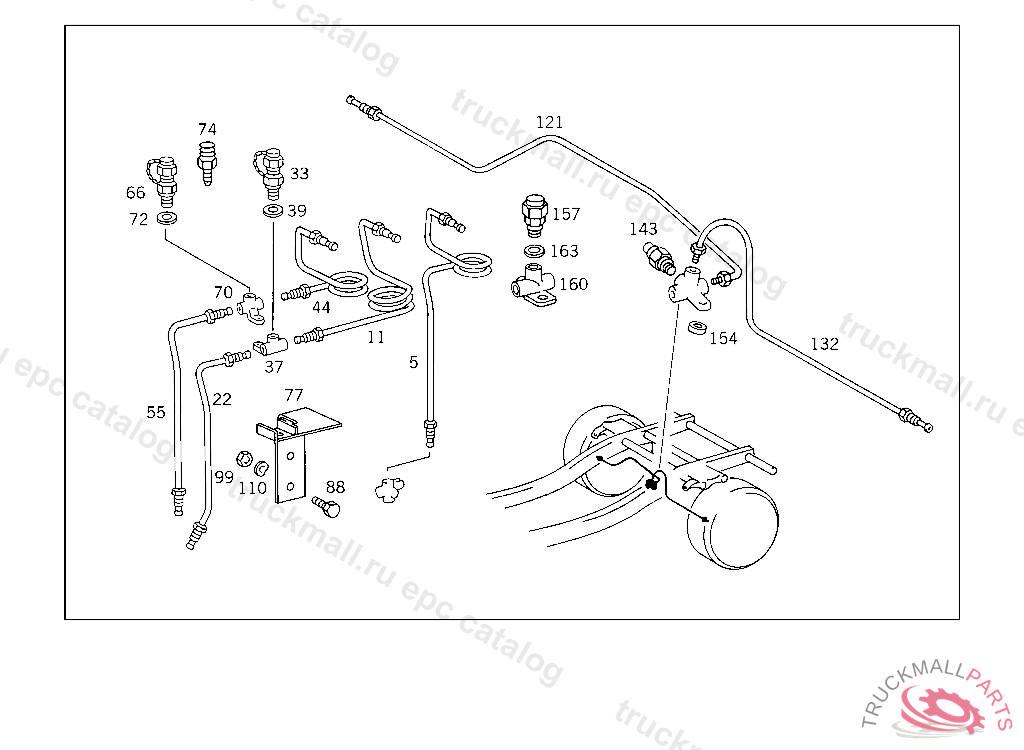 LINE FROM PRESSURE RETAINING VALVE TO BRAKE POWER REGULATOR 230 MM