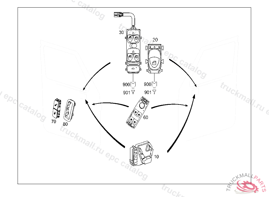 SWITCH BLOCK FOR DOOR RIGHT, 9107QFT246A1030 MIDSOFT BLACK