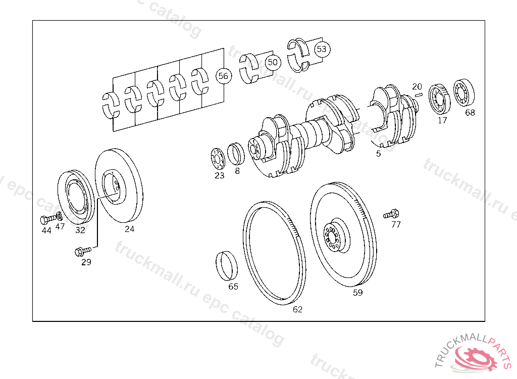 CRANKSHAFT WITH CRANKSHAFT BEARING SHELLS AND CONNECTING ROD BEARING SHELLS