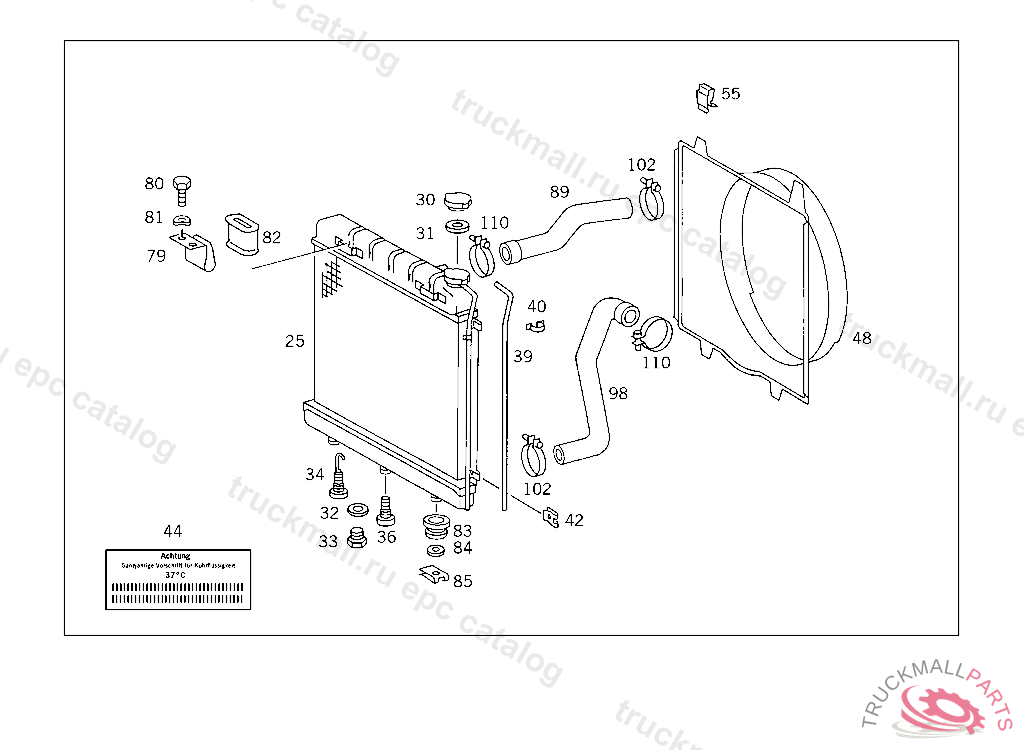 RADIATOR , ONLY USED WITH BUMPERS HAVING ADDITIONAL LOUVERS 974184 P 000001 EXHAUST STOCK OF OLD PART NUMBERS FIRST UP TO IDENT NO. P 251776 ONLY USED OM601 P 251434 ONLY USED OM602 P 251573 ONLY USED WITH AUTOMATIC TRANSMISSION, Replaced By: A6015008103