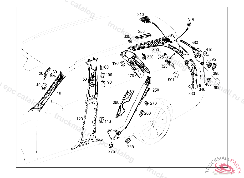 COVER C-PILLAR BOTTOM, LEFT BETWEEN REAR BACKREST AND WHEELHOUSE