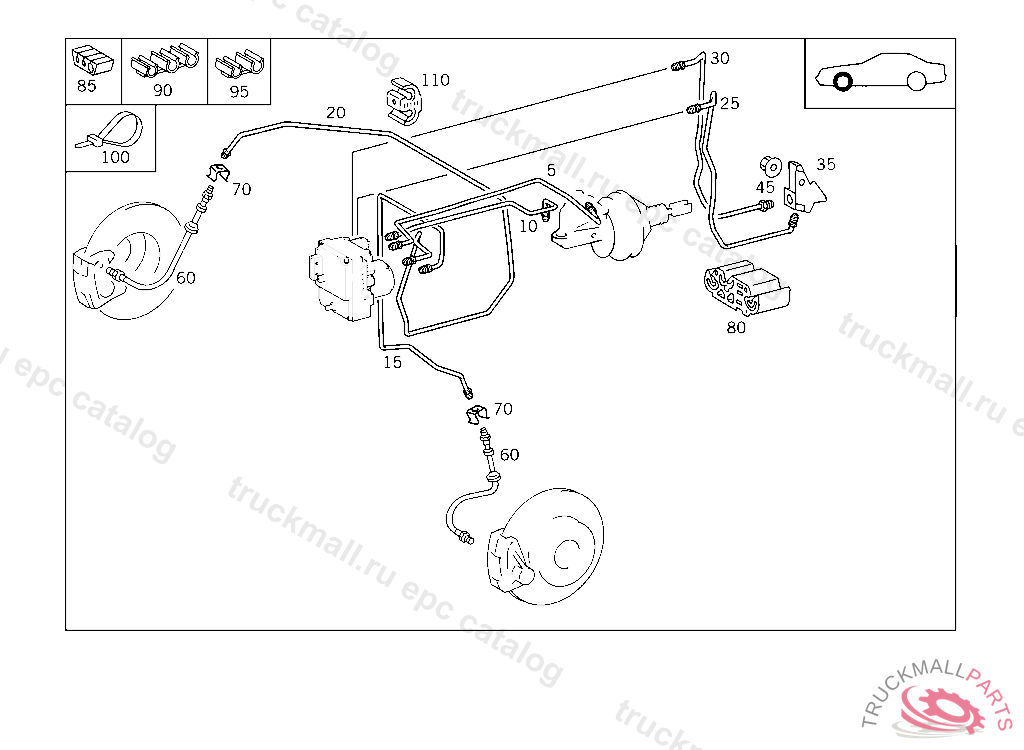 CLAMP SPACING OF BRAKE LINES, UP TO IDENT NO. A 212244 EXCEPT FOR A 187334 - A 212243 WITH CODE 867