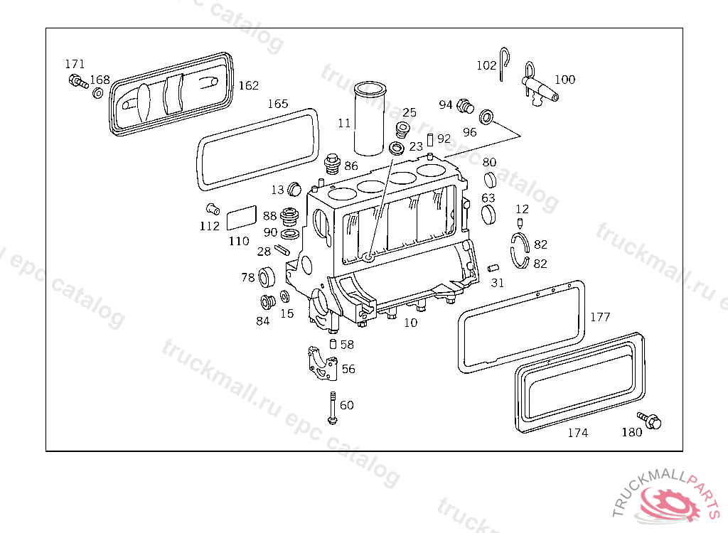 SHORT-BLOCK , 340.930 FROM ENGINE 085456 ONLY APPLICABLE TO ENGINES HAVING CAMSHAFT DRIVEN AIR COMPRESSOR WITH 94 MM DIA.PISTON