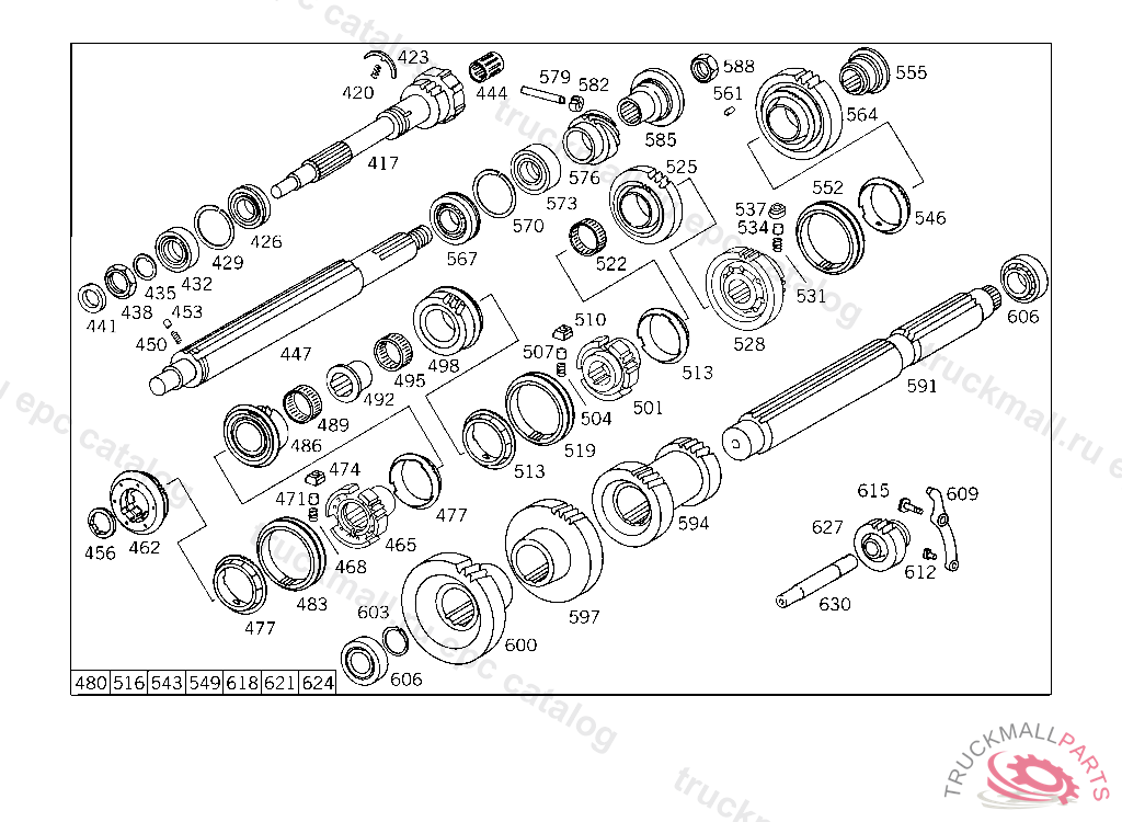 REVERSE IDLER GEAR REVERSE SPEED,A 057455, 341.023,027,032,034,036,038,041,042,043,044,045 FROM IDENT NO. A 057456 SEE SPARE PARTS LIST 713.0, MF 859A 077314, 341.116 FROM IDENT NO. A 077315 SEE SPARE PARTS LIST 713.0, MF 859