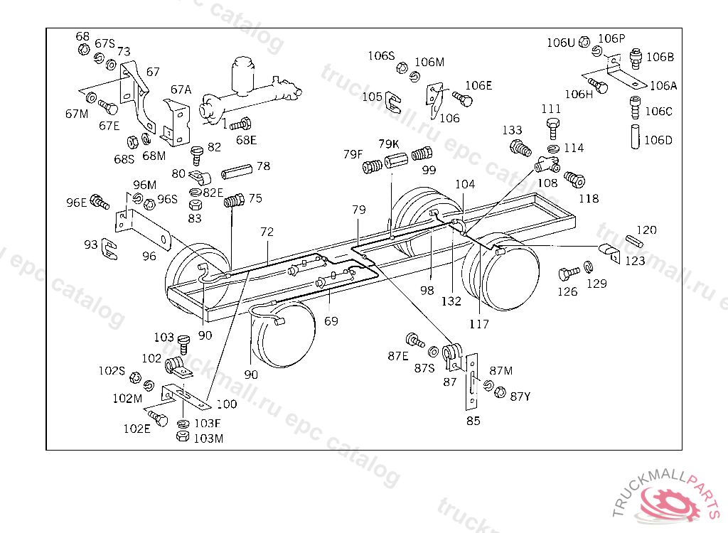 LINE FROM MASTER CYLINDER TO INTERMEDIATE PIECE AT REAR AXLE