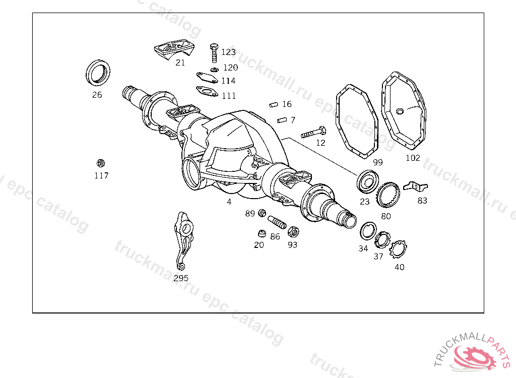 AXLE HOUSING WITH REAR AXLE TUBES AND DIFFERENTIAL CASE BEARING CAPS