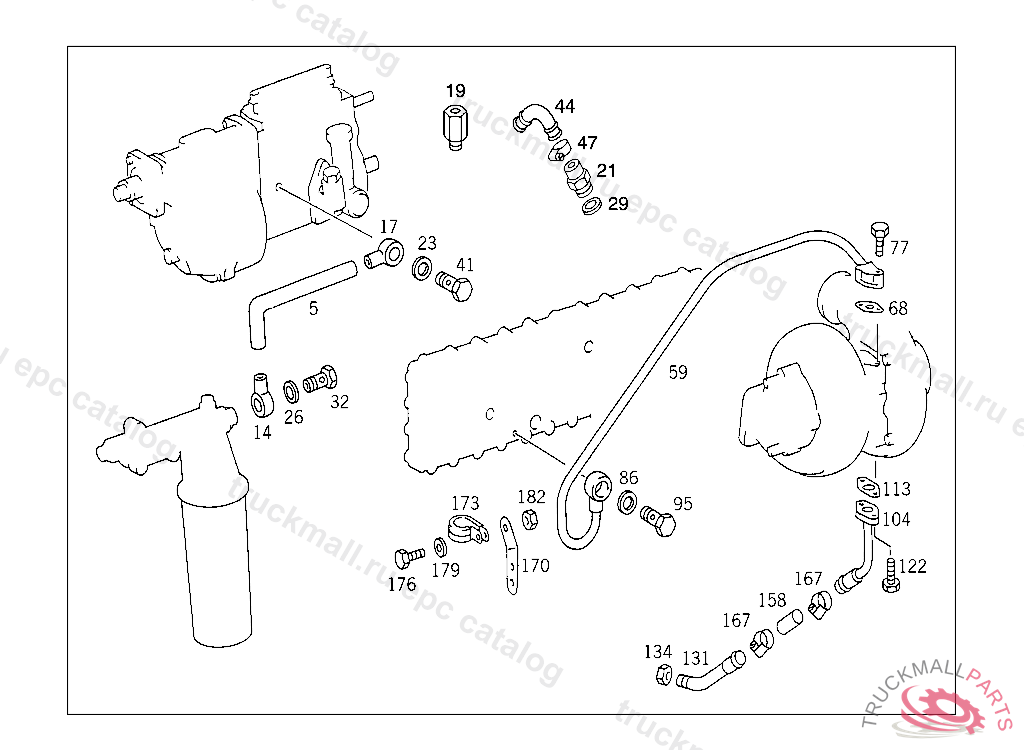OIL LINE AIR COMPRESSOR-TO-TIMING-CASE OIL RETURN LINE, FROM ENGINE 238226 YEAR OF MANUFACTURE 1992 UP TO ENGINE SEE GROUP 09