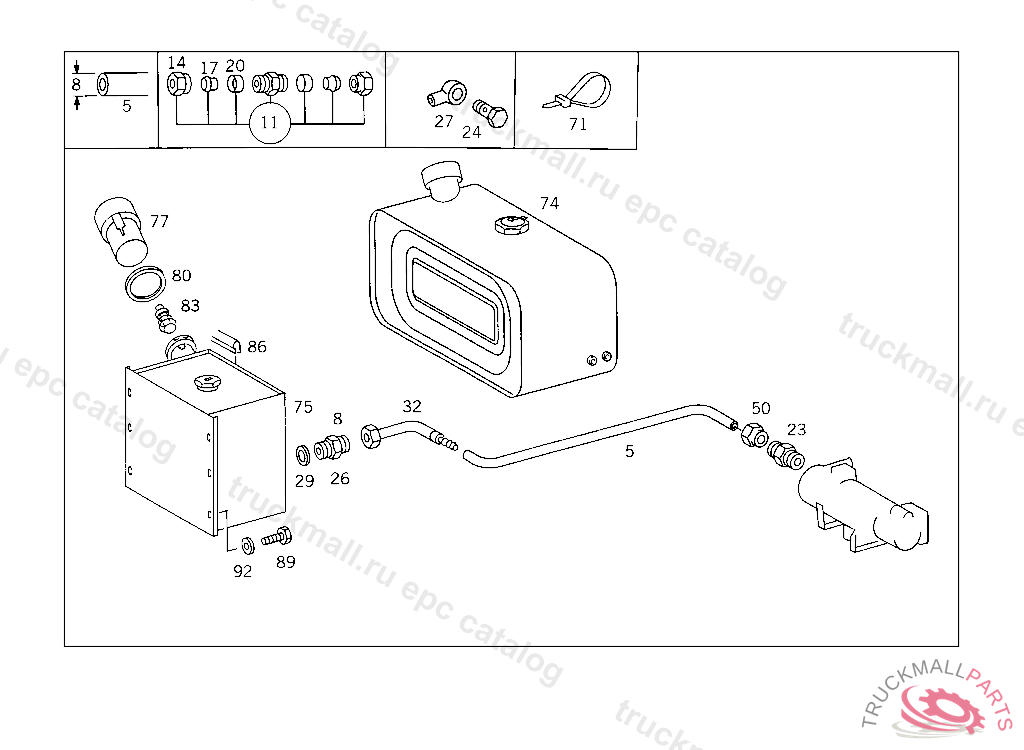 TANK , FIRST EXHAUST STOCK OF OLD PARTS UP TO IDENT NO.058848, Replaced By: A3578301583, +001A3578900671