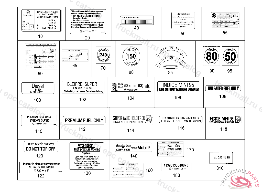 PLATE TIRE PRESSURE SETTINGS, IN FUEL-FILLER FLAP, A 00550520070131 A 02401620090630800