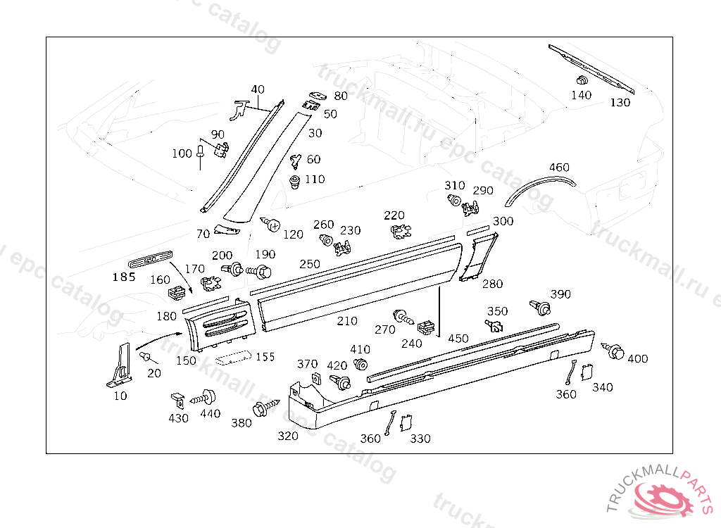 SIDE SILL LEFT, TO BE ADAPTED TO VEHICLE PRIOR TO PAINTING TO BE PAINTED PRIOR TO INSTALLATION F 125158 EXCEPT CODE 805 ALSO INSTALLED IN VEHICLE TO F 125157 WITH CODE 806