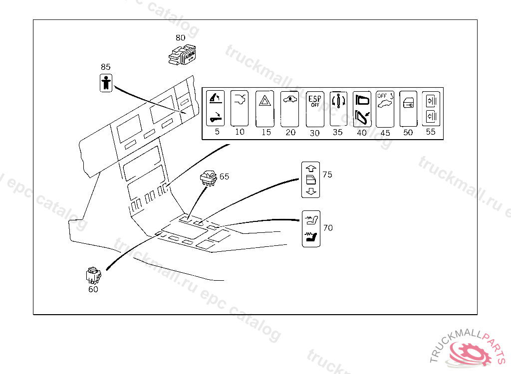 SWITCH ELECTRONIC STABILITY PROGRAM (ESP), F 125158 EXCEPT CODE 805 ALSO INSTALLED IN VEHICLE TO F 125157 WITH CODE 806