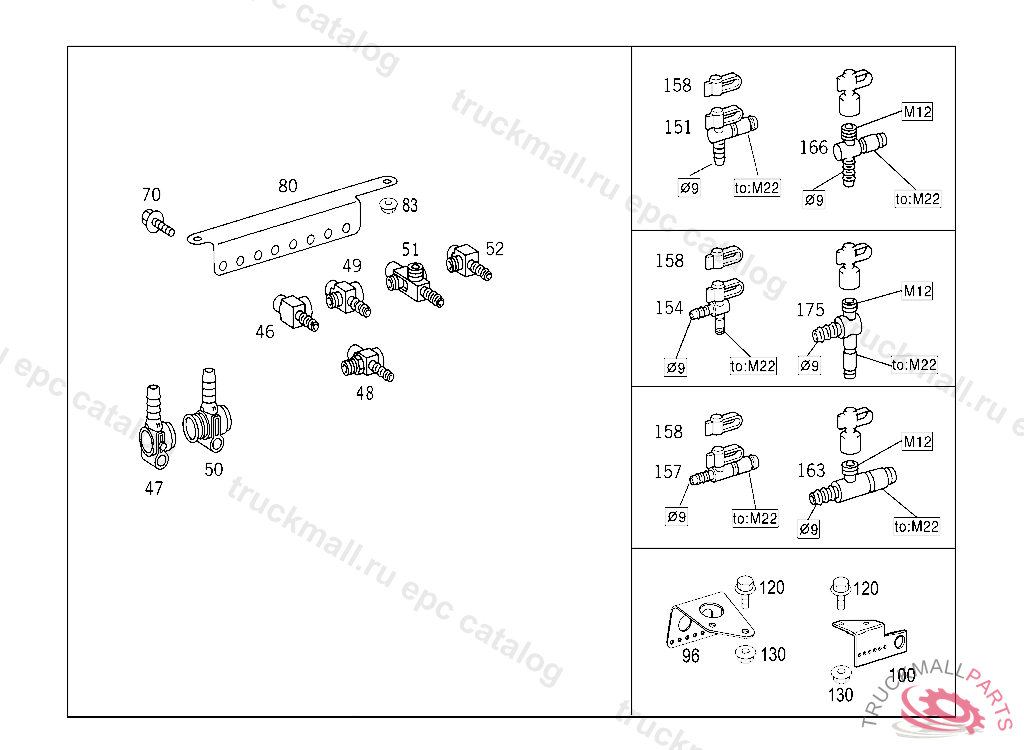 T-FITTING COMPRESSED-AIR-LINE PLUG-CONNECTION TO M 22, M 12X1.5 / 9 MM, VOSS 232