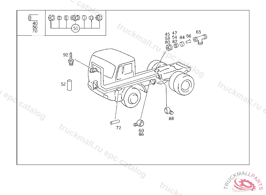 F-FITTING BRAKE PRESSURE REGULATOR CONNECTION, 620.415 UP TO CHASSIS 5 014668 620.416 UP TO CHASSIS 5 000515 620.417 UP TO CHASSIS 4 972023