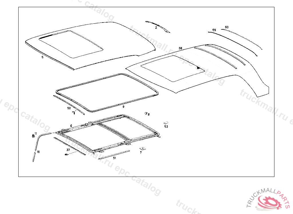 ROOF PANELLING , FROM CHASSIS 031345 WHEN NO ELECTRIC DRIVE HAS BEEN INSTALLED,INSERT 110 782 00 39 FILLER