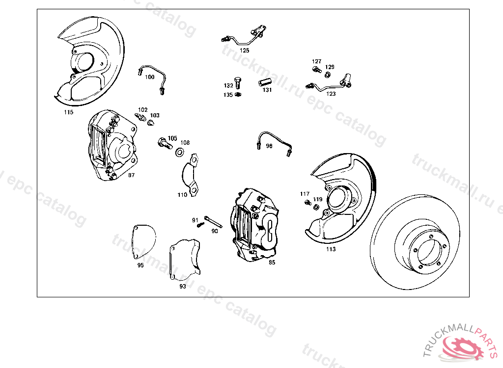 CALIPER , FROM CHASSIS 040635 INSTALLED ON,SEE FOOTN.103 NOT INSTALLED ON,SEE FOOTN.104 FROM FRONT AXLE 040871 NOT INSTALLED ON 055962-056414 014 UP TO CHASSIS 072368,021,023 UP TO CHASSIS 072233, Replaced By: A0004214998, +001A0005862742