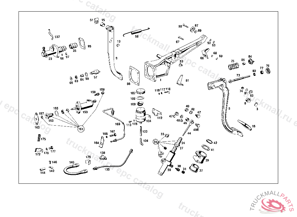 LINE FROM CLUTCH HOSE TO CLUTCH SLAVE CYLINDER, FROM CHASSIS: 000,002,010 089164 015 105337 100,102,103,110,112 262248 115 112353 005,017,105,107,108,117,119 000001 UP TO CHASSIS: 005,017 003779 105,107,108,117,119 004645