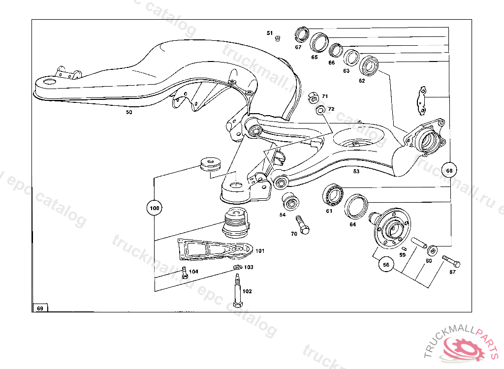 REPAIR KIT REAR AXLE HOUSING WITH DIFFERENTIAL, REAR AXLE HOUSING WITH DIFFERENTIAL AND WITH SIDE BEARING CAPS 003 103238 007 087550 086 007105 093 008991 102,103 240182 105 231728 183 015394 190 021956 193 002092 200 027294 280 000776 283 003631