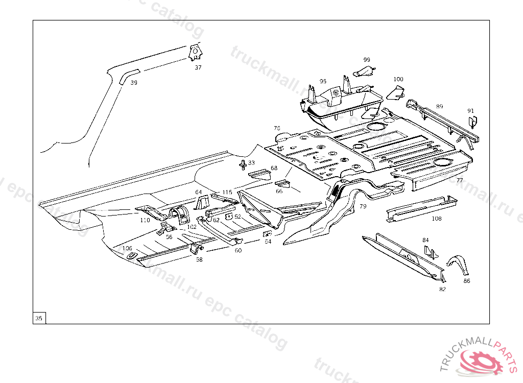 SPARE WHEEL WELL , EXHAUST STOCK OF OLD PART NUMBERS FIRST UP TO CHASSIS: 000,010122680 015164074 100,103,110, 332657 115173584, Replaced By: A1156100475