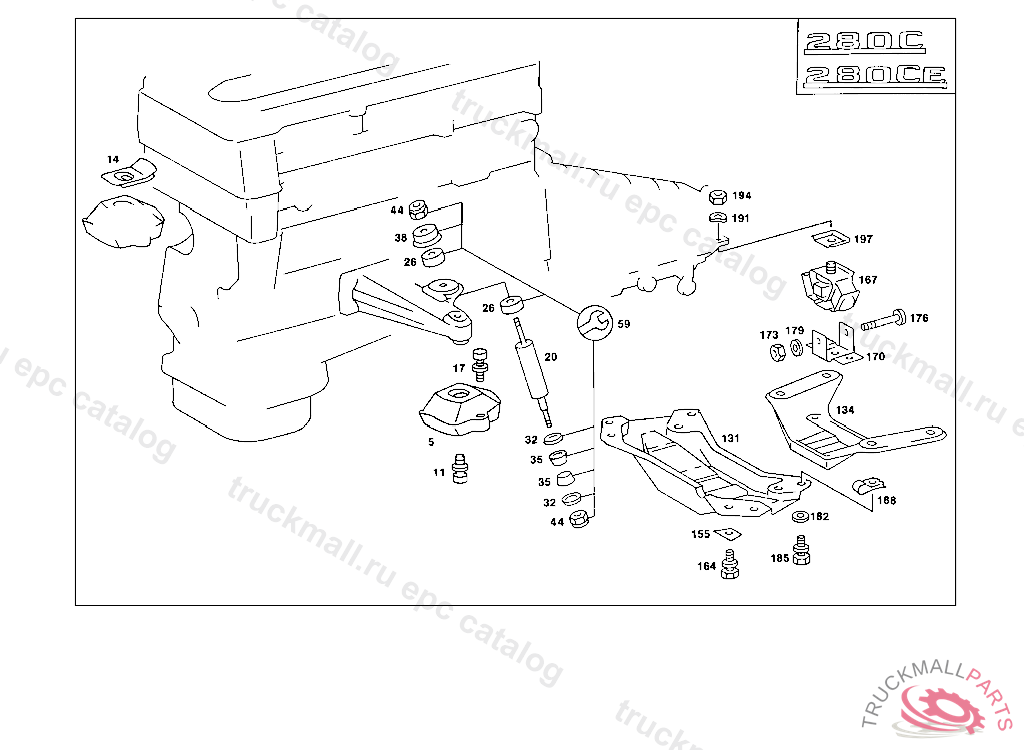 SCREW ENGINE FRONT MOUNTING TO ENGINE SUPPORT, 000 042295 003 019476 102,103 029067 105 038078