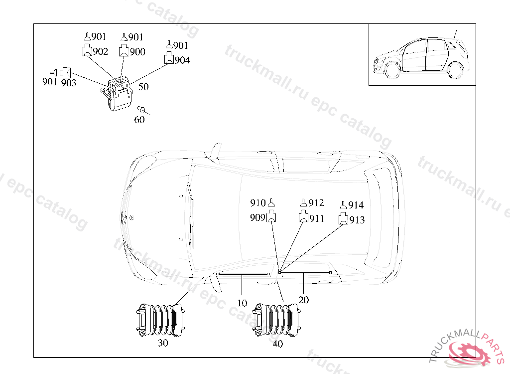 PIN BUSHING HOUSING DOOR CONTROL UNIT AT REAR DOOR, LEFT AND RIGHT 8-PIN MQS,N69/3 N69/4