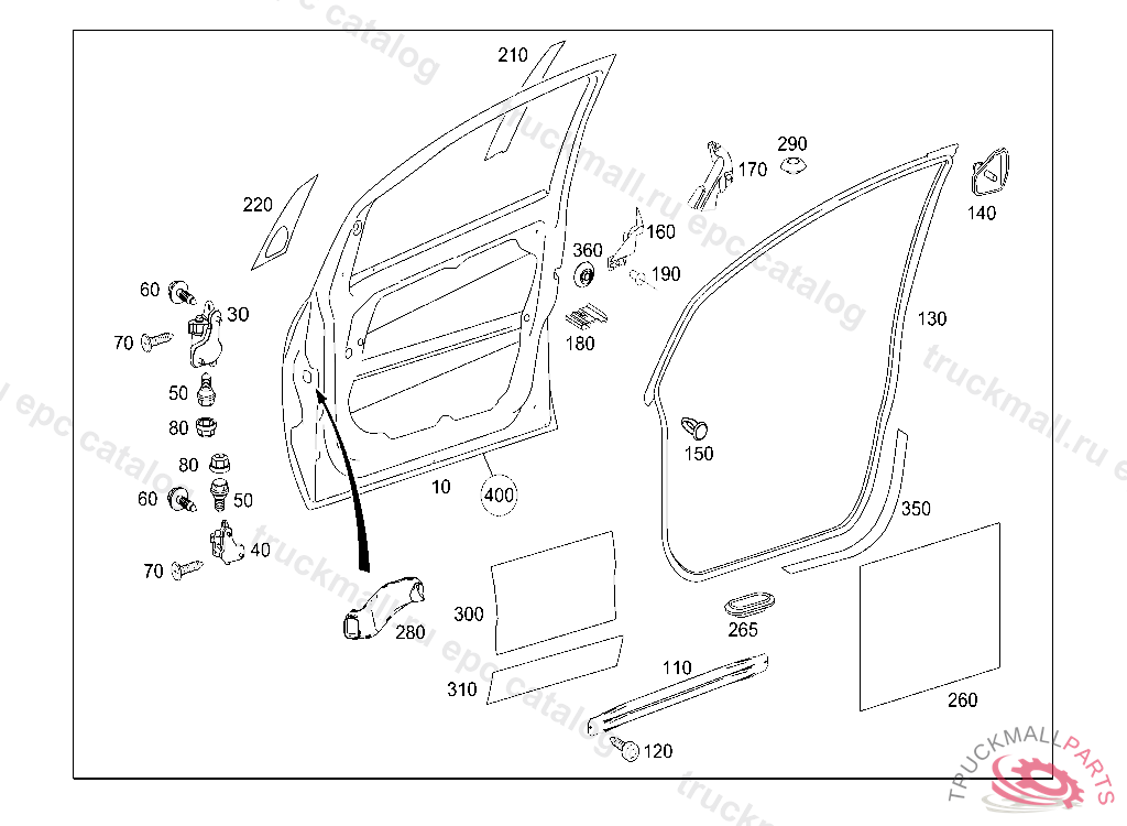TS DRIVER'S DOOR WITH DOOR AT BODYSHELL, RIGHT, IN ADDITION, THE COVER (DECORATIVE FOIL) AND THE OUTER SEALING RAIL MUST BE ORDERED BASED ON EQUIPMENT LINE/MODEL