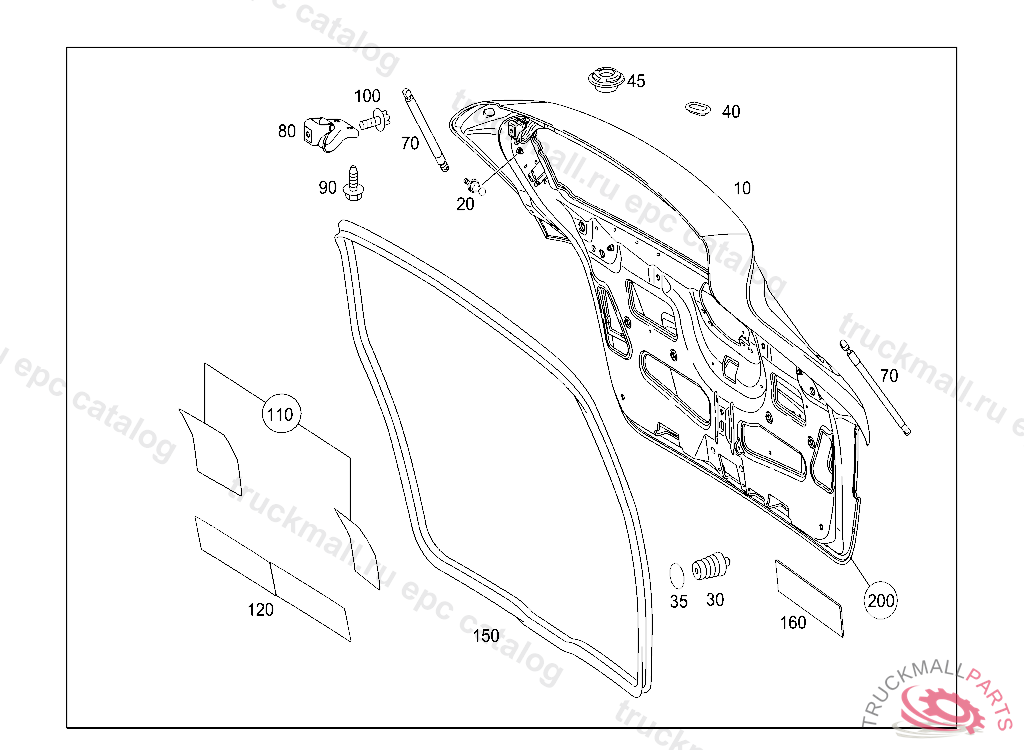 TS REAR DOOR WITH DOOR AT BODYSHELL, REAR, IN ADDITION THE CENTER HIGH-MOUNTED BRAKE LAMP, GLASS MOUNTING SET AND MOD. DES. MUST BE ORDERED DEPENDING ON THE EQUIPMENT LI NE/MODEL