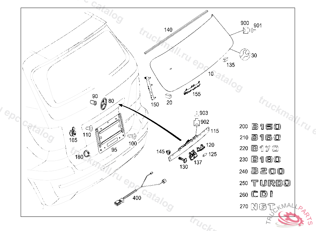 REAR WINDOW REAR PANEL DOOR, FIRST EXHAUST STOCK OF OLD PARTS UP TO IDENT NO. J 38482220080602, Replaced By: A1697400000
