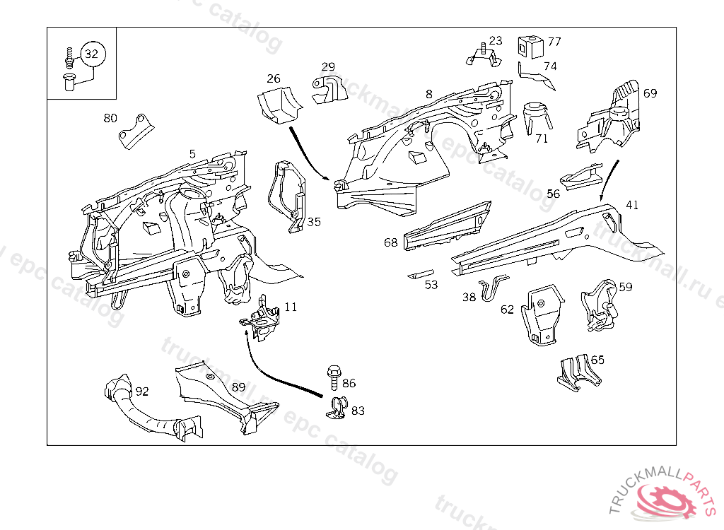 WHEELHOUSE , FIRST EXHAUST STOCK OF OLD PARTS UP TO IDENT NO. F 114541, Replaced By: A1246205961