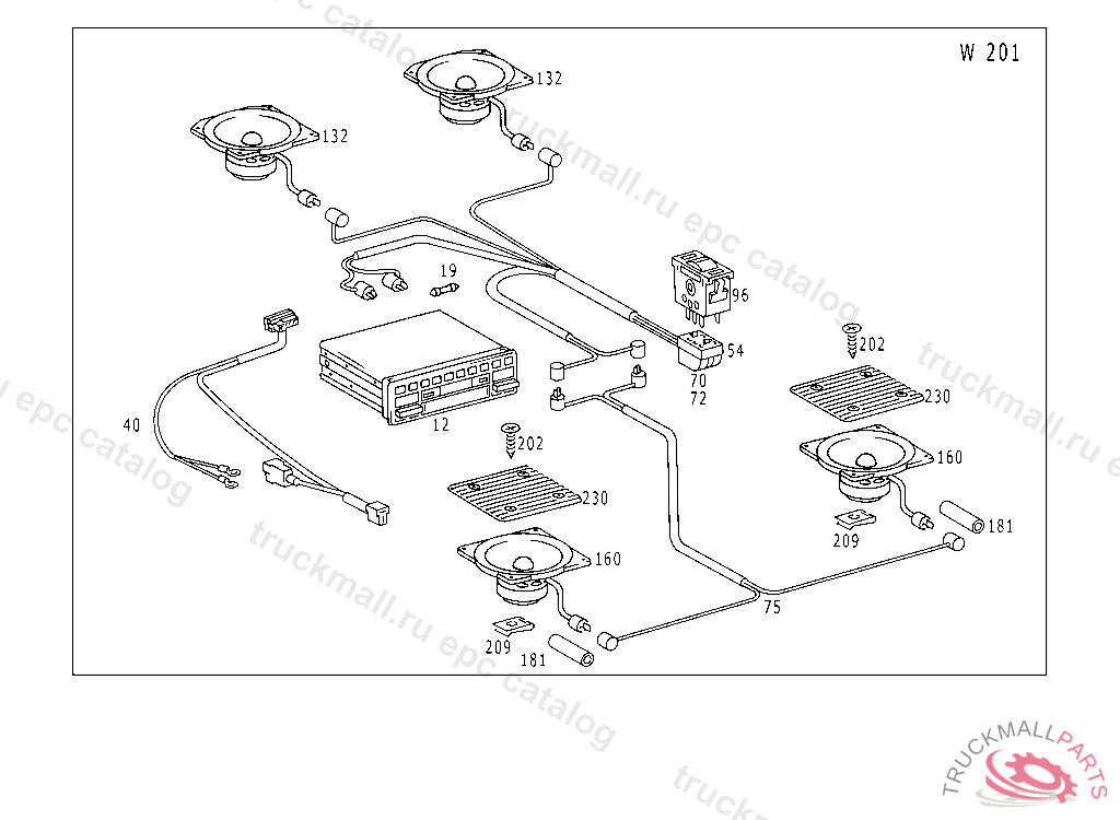 ELECTRIC CABLE FRONT AND REAR LOUDSPEAKERS AND FADER CONTROL, 201 A 531257 F 664540
