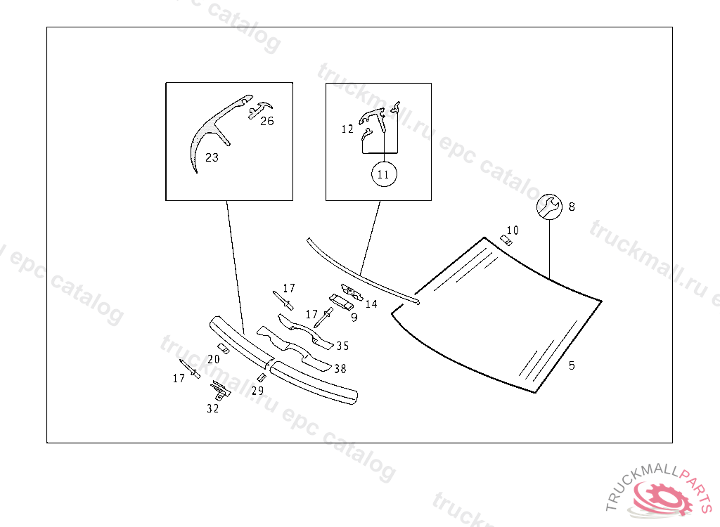 CLIP CROSS MEMBER BELOW WINDSHIELD,TOP, B 963067 J 011149 FROM IDENT NO.,SEE GROUP: 82 120 WINDSHIELD WIPER