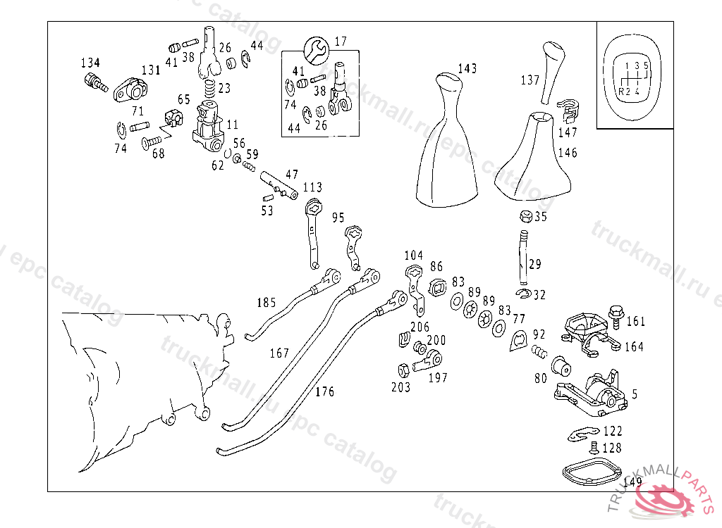 SHIFTING TUBE FOUR-GATE SHIFT, 124.0,124.1 : F 063053 124.2,124.3 : F 079077