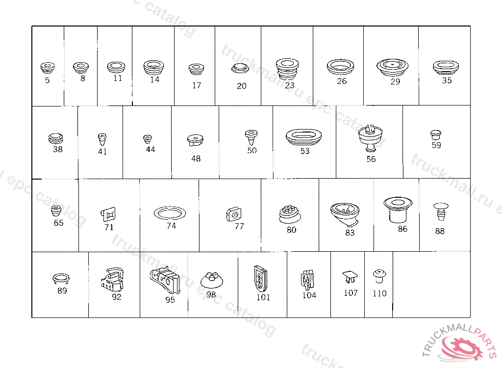 RUBBER BUFFER TO PLUG THE MOUNTING HOLE USED FOR GROUND CONNECTION IN CASE OF R.H.D.