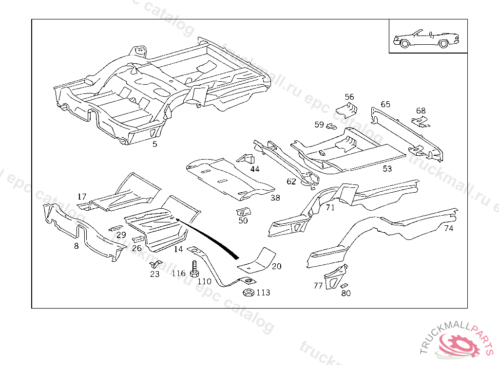 REAR FLOOR , ORDER ADDITIONALLY 1X 124 610 01 36, 1X 124 610 02 36, 2X 201 610 03 36