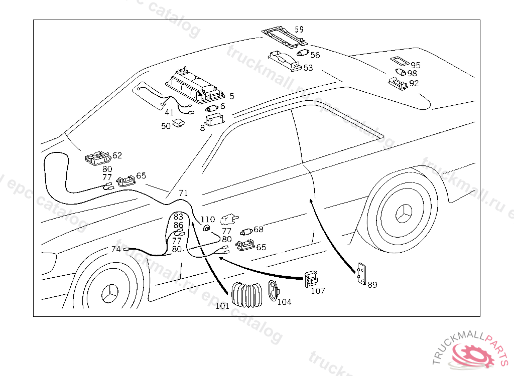INTERIOR LAMP ROOF REAR RAIL, FROM MODEL YEAR '83